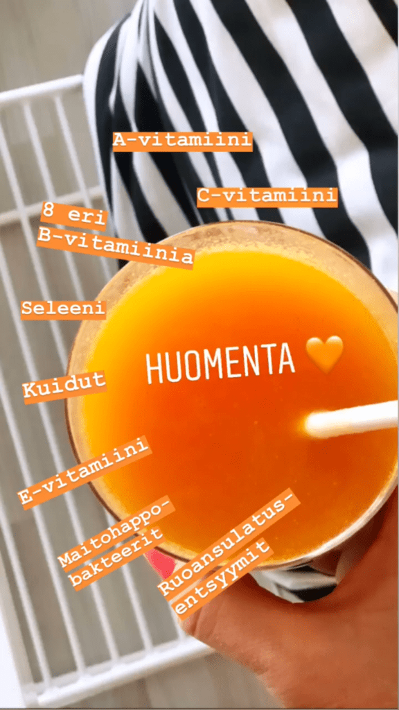 Itse rakastan aamiaisia ja erityisesti brunsseja. Aloitan aamuni aina paitsi vesilasillisella, myös Fitlinen Powercocktail-juomalla. Juoma sisältää runsaasti mm. vitamiineja, kuituja, ruoansulatusentsyymejä, maitohappobakteereja ja seleeniä. Juoma sekä ravitsee, että hoitaa suolistoa ja koko kehoa.