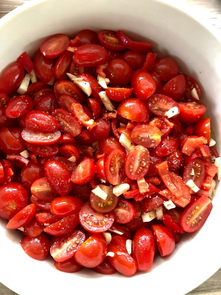 Laita uuni päälle 175 asteeseen. Puolita kirsikkatomaatit uunivuoan pohjalle. Lisää hienonnettu chili / paprika. Pieni valkosipulin kynnet ja laita vuokaan. Mausta suolalla ja pippurilla. Lorauta reilusti oliiviöljyä päälle ja sekoita. Lisää vielä feta kokonaisena tai isoina paloina päälimmäiseksi.